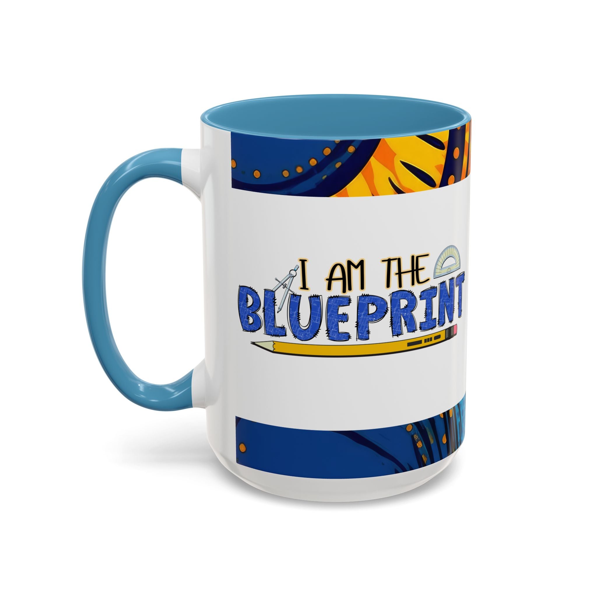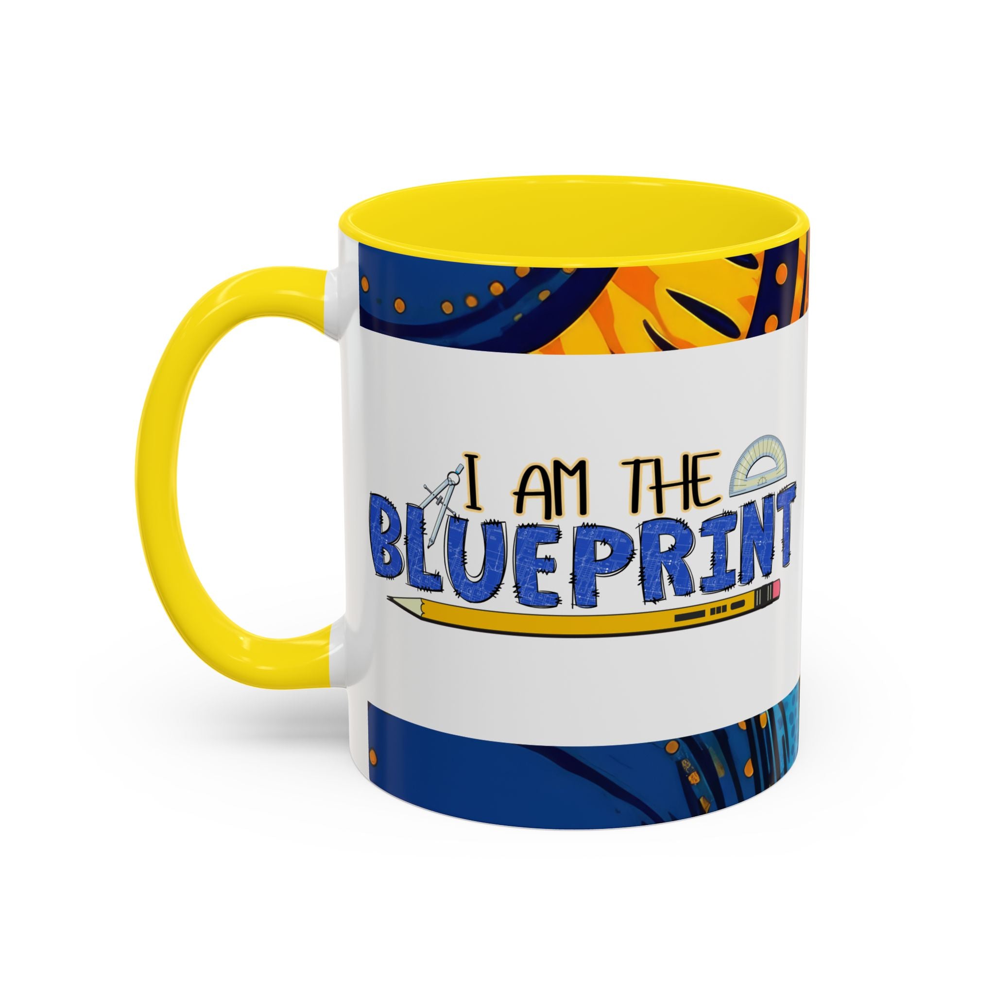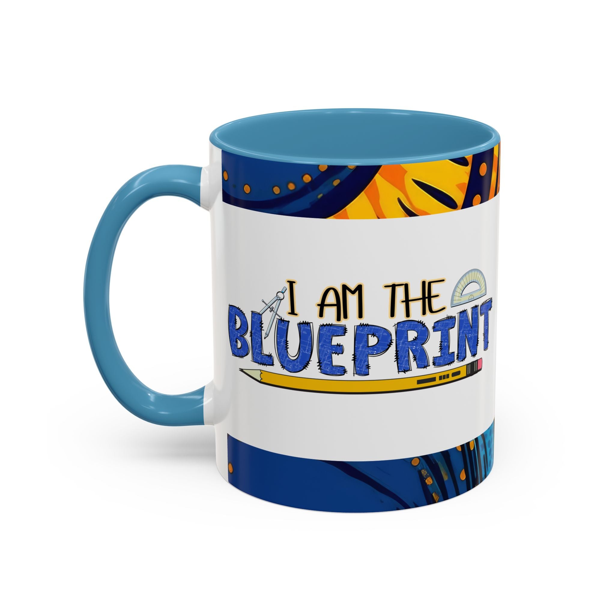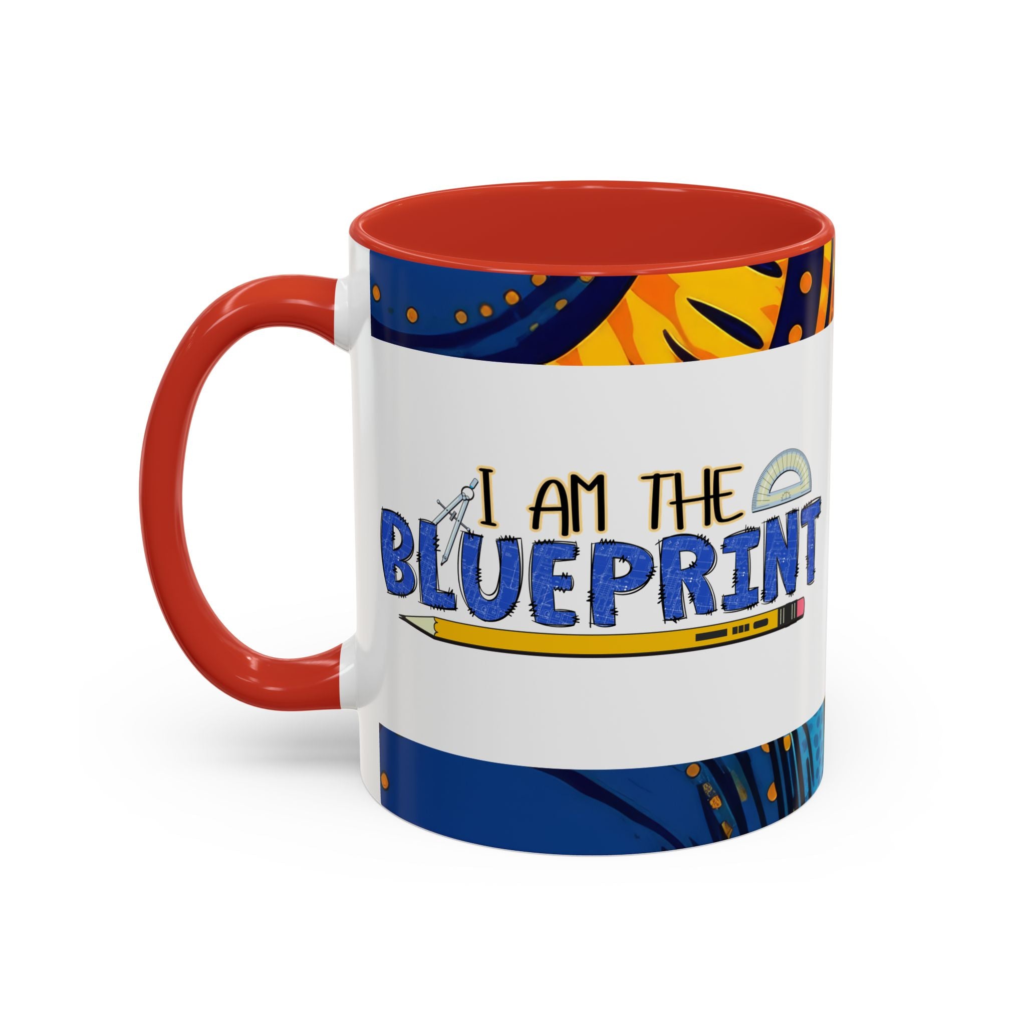 Morning light, a warm mug in hand, and a little reminder of creativity: this ceramic accent mug carries a playful blueprint design that speaks to makers, builders, and doodlers. Hand-drawn lettering and a pencil-and-protractor motif wrap across the glossy white surface, while the colored interior and handle add a bright, contrasting edge. It settles into daily routines — drafting plans, sketching ideas, or fueling late-night focus sessions — and feels like a small studio companion that quietly celebrates the act of making.