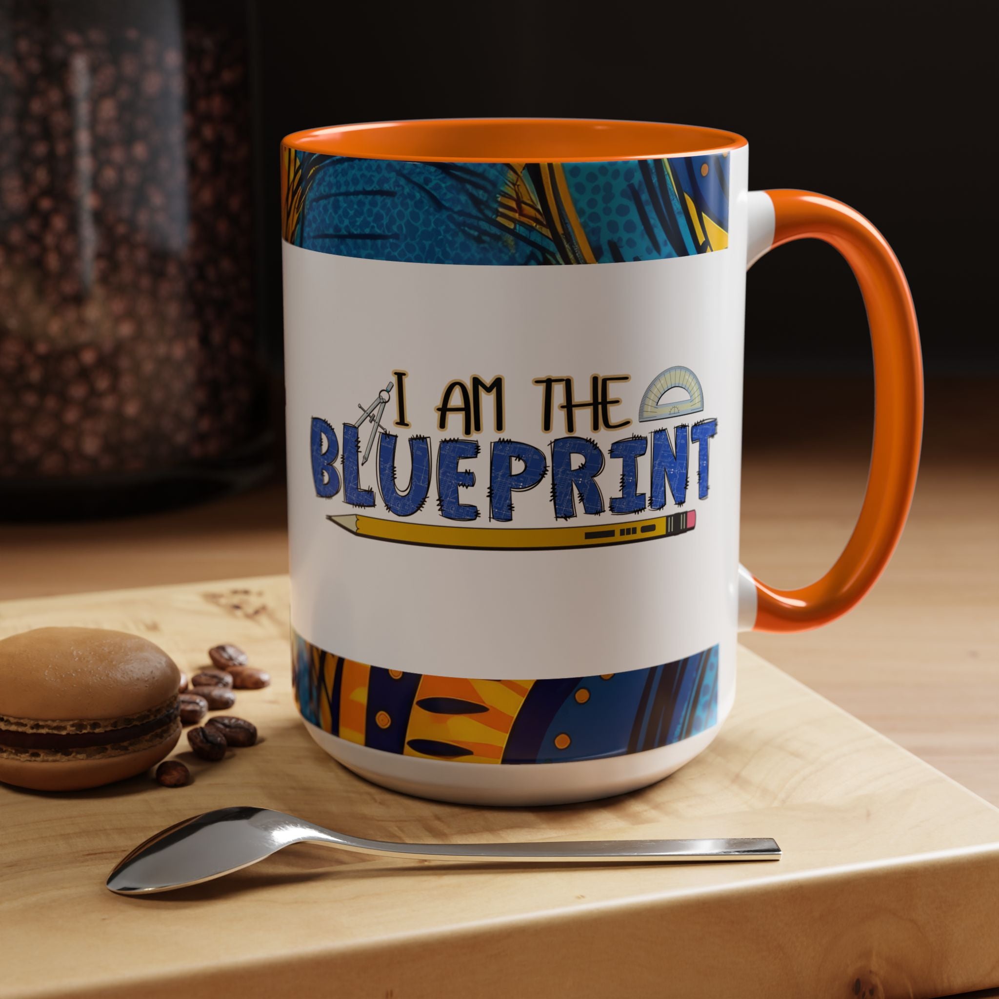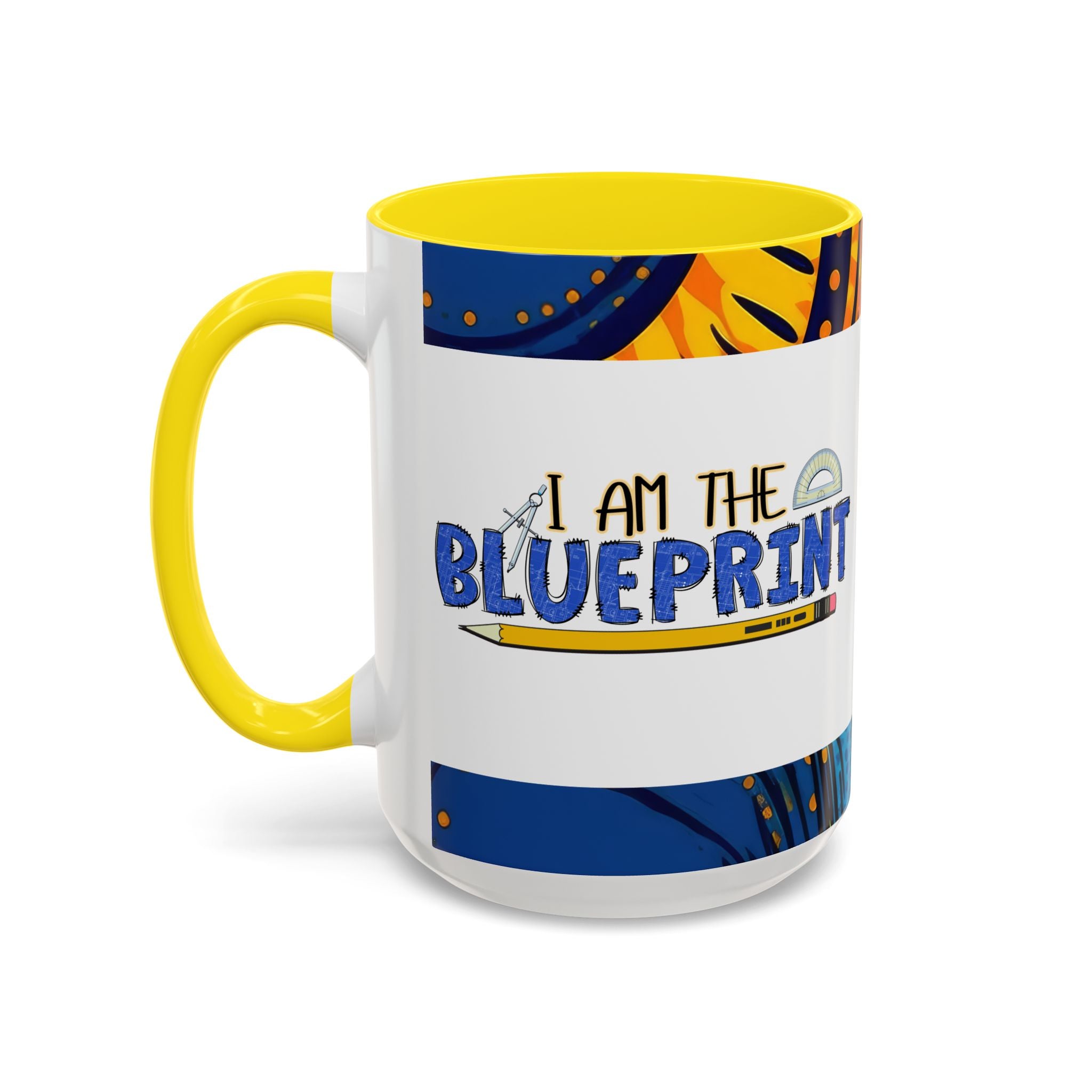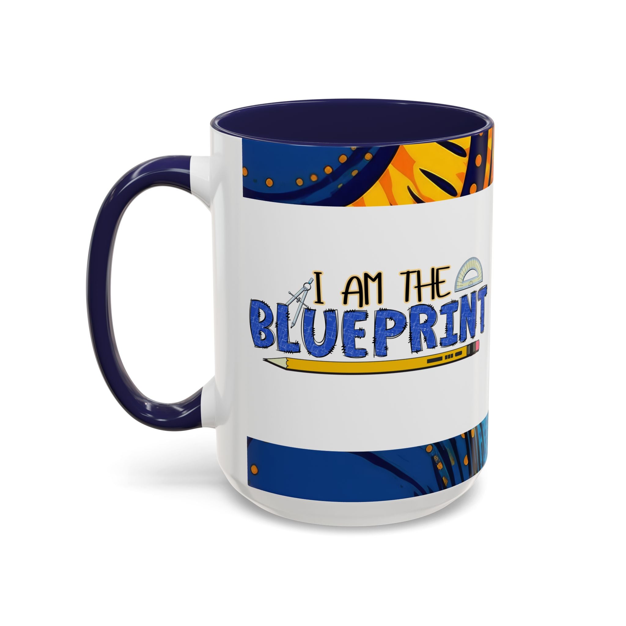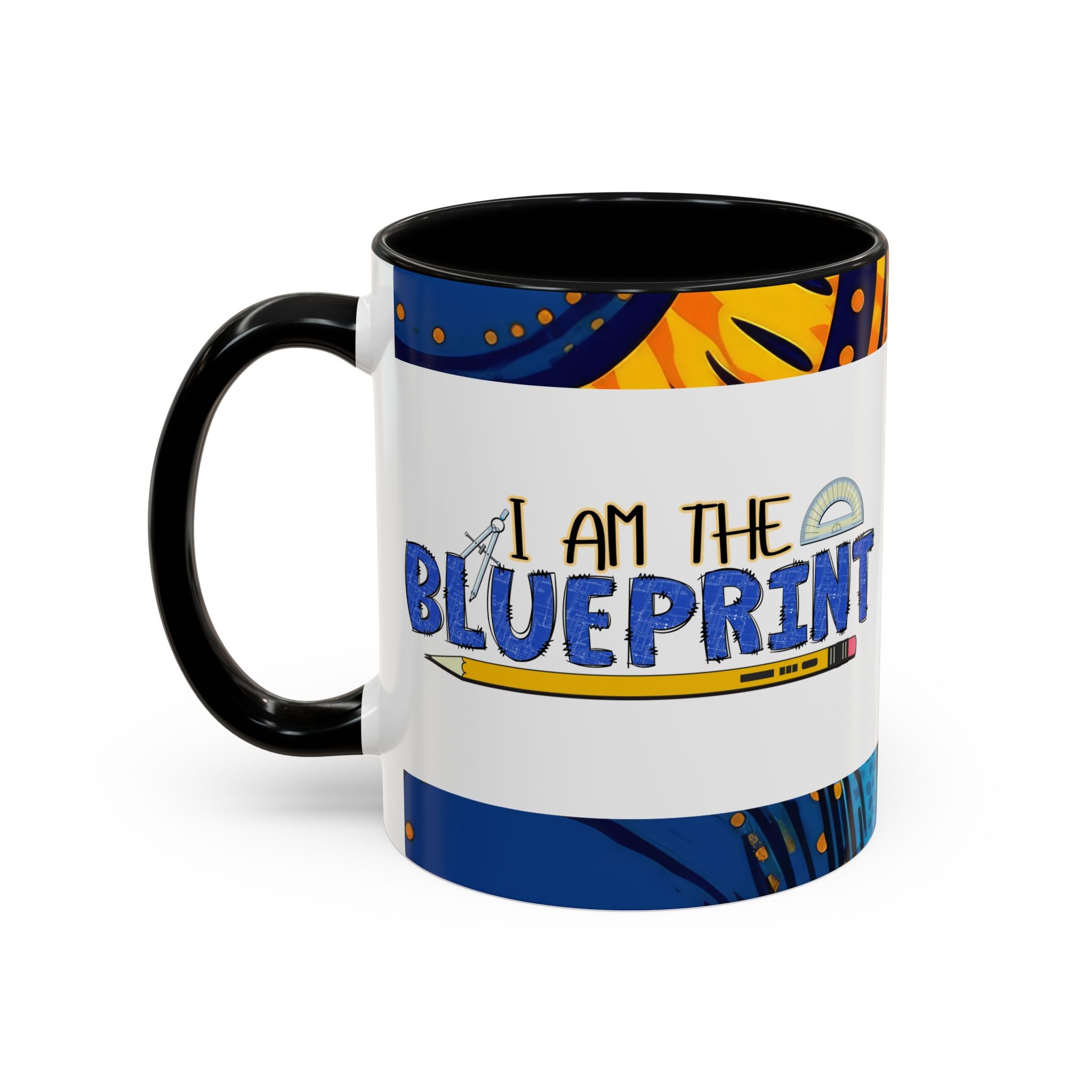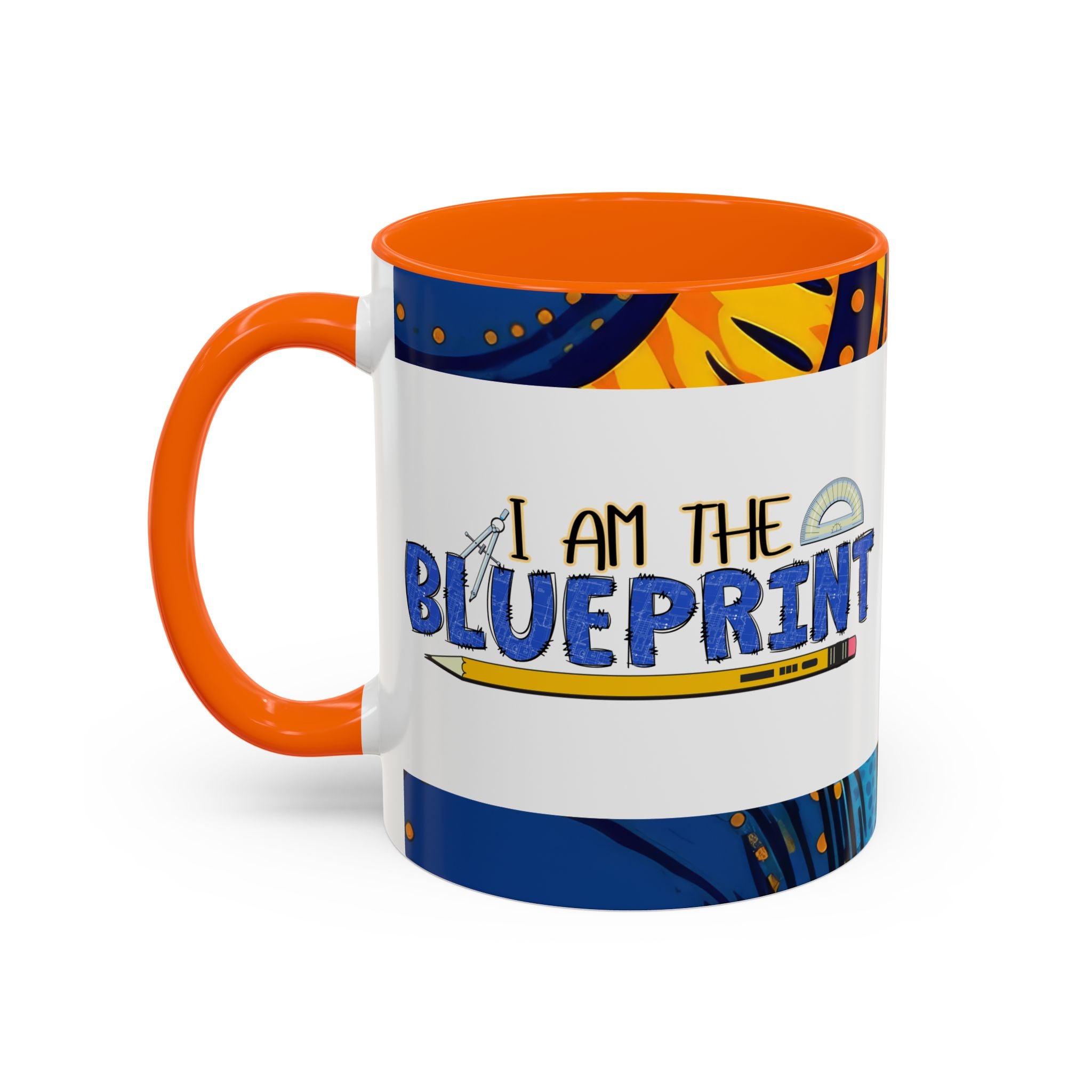 Morning light, a warm mug in hand, and a little reminder of creativity: this ceramic accent mug carries a playful blueprint design that speaks to makers, builders, and doodlers. Hand-drawn lettering and a pencil-and-protractor motif wrap across the glossy white surface, while the colored interior and handle add a bright, contrasting edge. It settles into daily routines — drafting plans, sketching ideas, or fueling late-night focus sessions — and feels like a small studio companion that quietly celebrates the act of making.